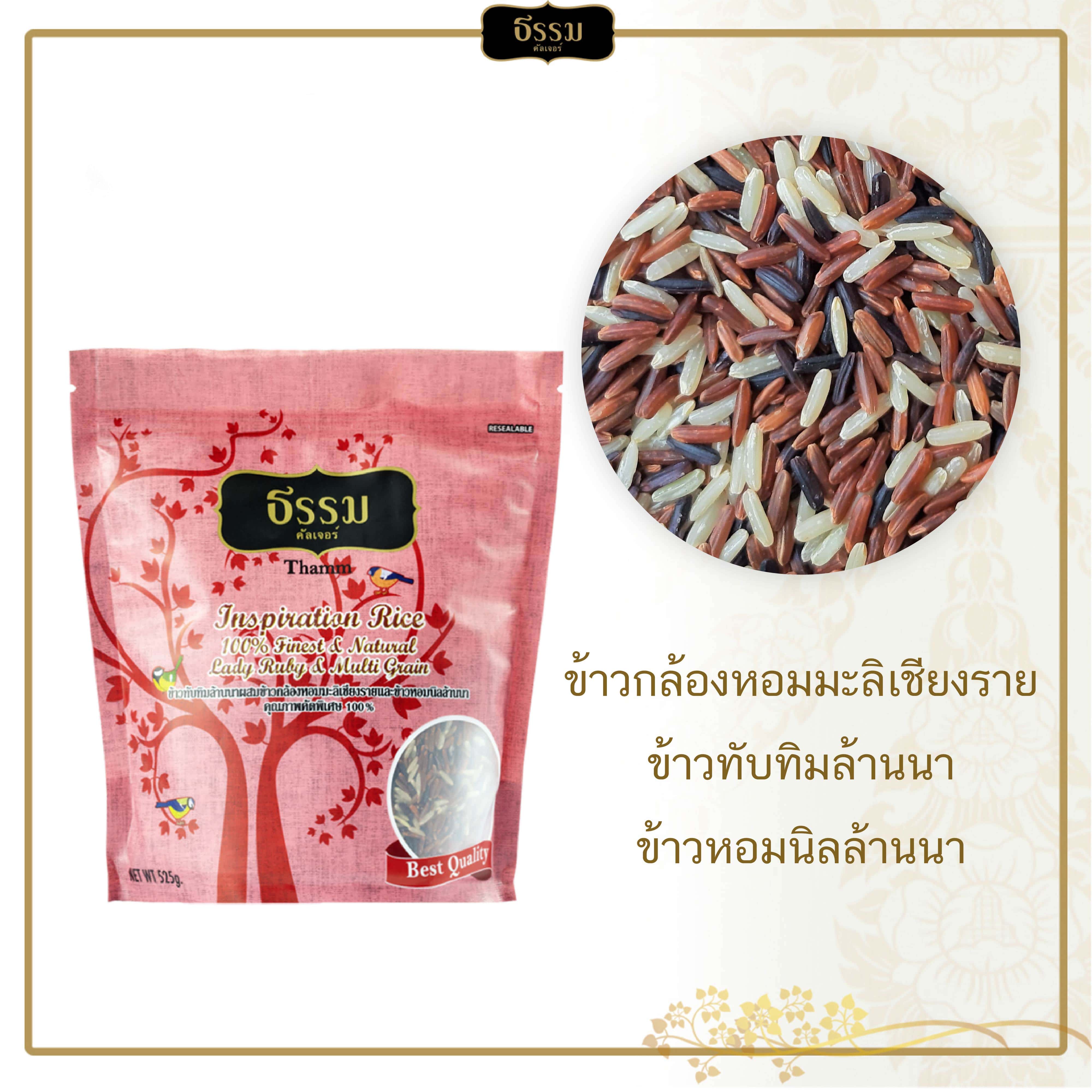 ธรรม ข้าวทับทิมล้านนา ผสมข้าวกล้องหอมมะลิเชียงรายและข้าวหอมนิลล้านนา คัดพิเศษ100% ขนาด 525 กรัม แพ็ค 10 ถุง (ยกลัง)