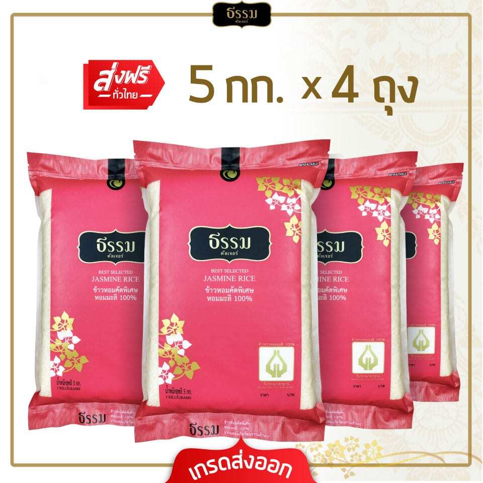 ธรรม ข้าวหอมมะลิ คุณภาพคัดพิเศษ 100% ขนาด 5 กก. แพ็ค 4 ถุง