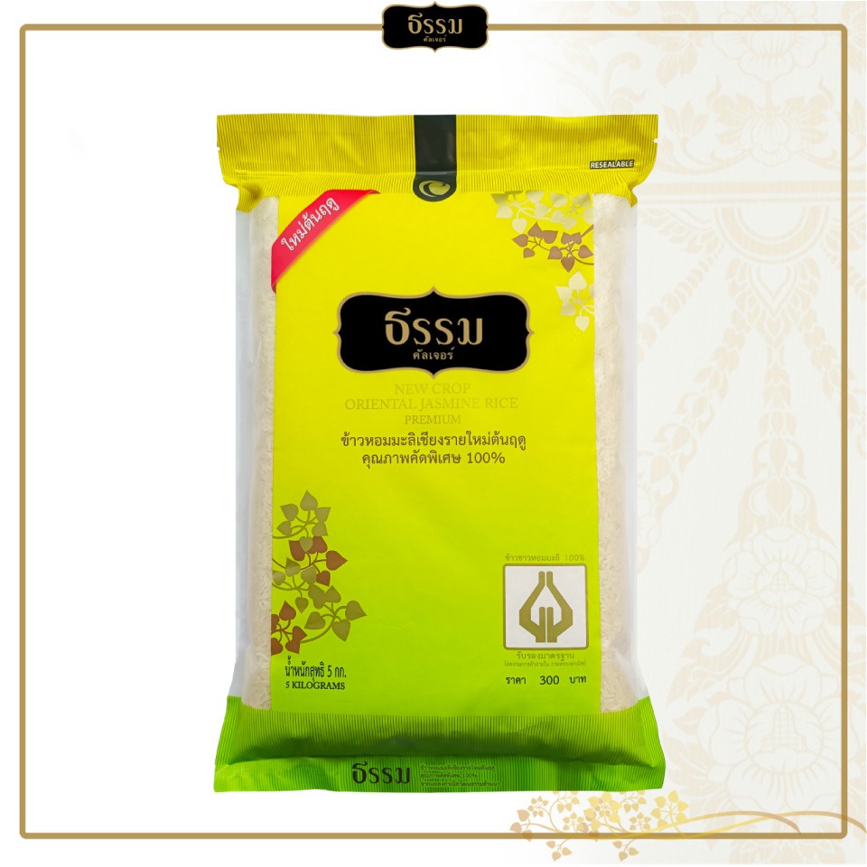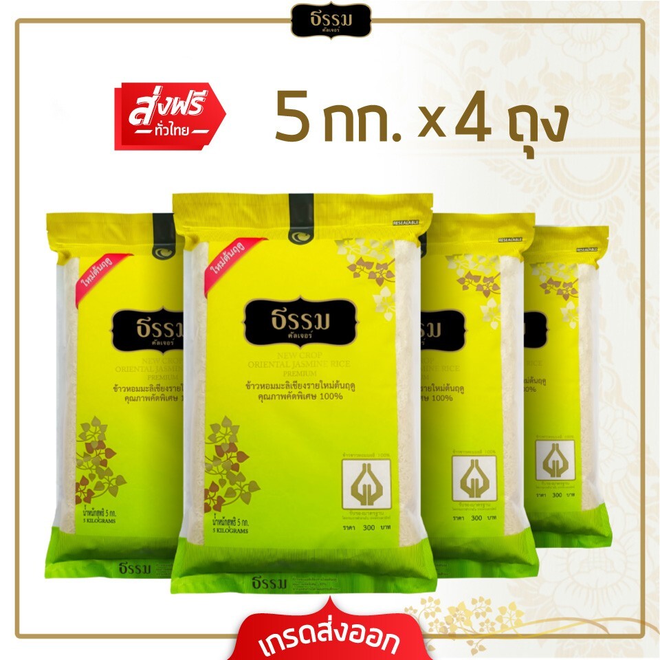[ส่งฟรี] ธรรม ข้าวหอมมะลิเชียงราย ใหม่ต้นฤดู คุณภาพคัดพิเศษ 100% ขนาด 5 กก. แพ็ก 4 ถุง