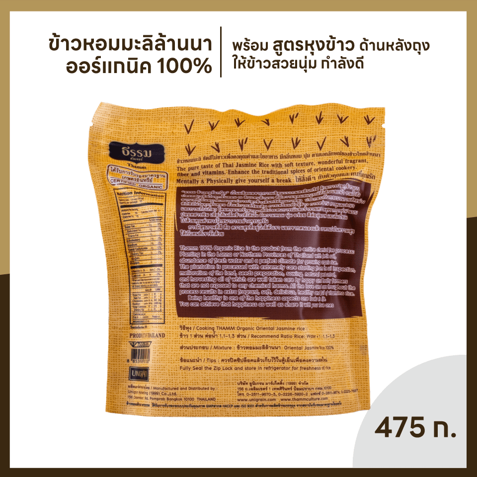 ธรรม ข้าวหอมมะลิล้านนา ออร์แกนิค 100% ขนาด 475 กรัม แพ็ค 10 ถุง (ยกลัง)