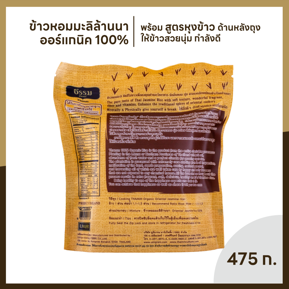 SKU: ข้าวออร์แกนิค หอมมะลิล้านนา 475ก. 10 ถุง (ยกลัง) Categories: , , Tag: