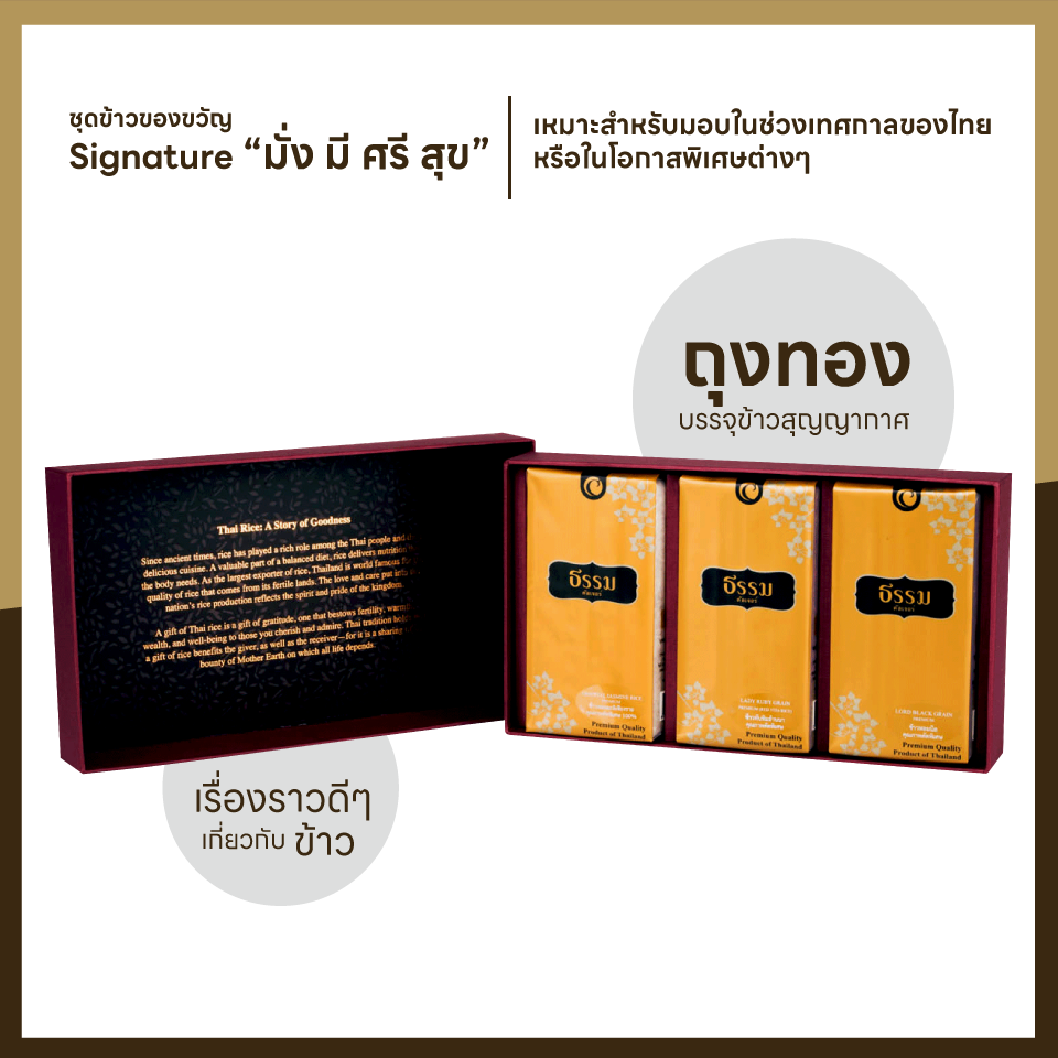 ข้าวเป็นสิ่งที่มีความหมายสูงส่งทางจิตใจของชาวไทยมาโดยตลอด เพราะประเทศไทยเป็นประเทศเกษตรกรรมที่มีการส่งออกข้าวเกือบมากที่สุดในโลก สร้างความภาคภูมิใจให้กับคนทั้งชาติการมอบข้าวที่มีคุณภาพคัดพิเศษเป็นอย่างดีให้กับคนที่เรารัก เคารพ นับถือหรือปราณนาดี เปรียบเสมือนการมอบ คุณค่าของสิ่งดี ๆ ที่แสดงถึงความอุดมสมบูรณ์ การกินดีอยู่ดี ความอบอุ่นและความมั่งคั่ง การมอบข้าวให้แก่กันหรือการทำบุญด้วยข้าวก็หมายถึงการให้ชีวิตของตนโชคดีมีชัย มั่ง มี ศรี สุข ตามความเชื่อของชาวไทย