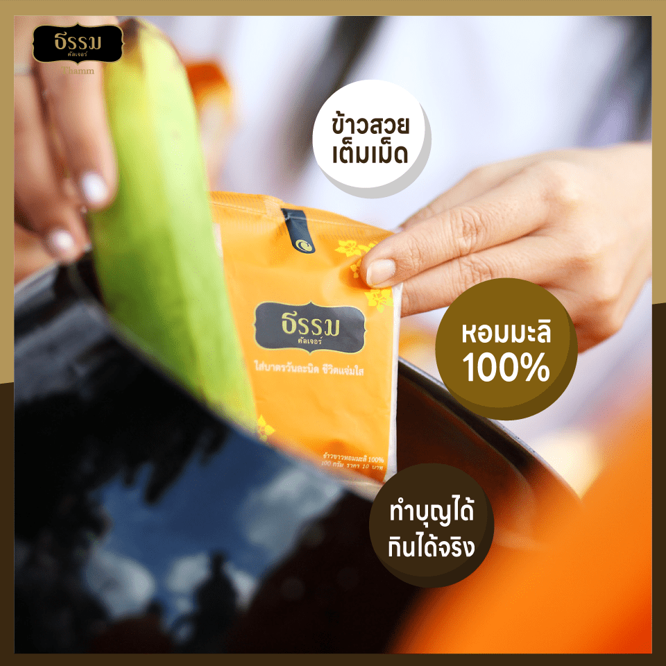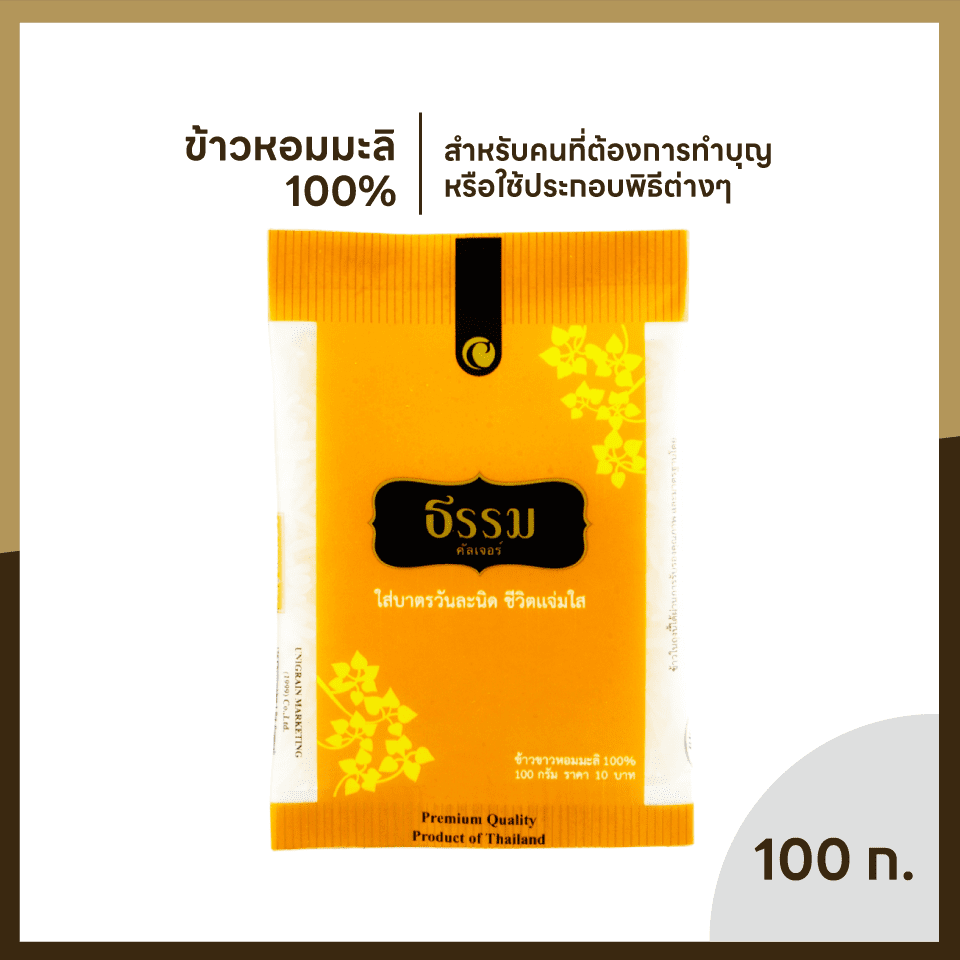 ธรรม ข้าวใส่บาตรหอมมะลิ 100% ขนาด 100 กรัม จำนวน 135 ถุง (แพ็คละ 9 ถุง จำนวน 15 แพ็ค) (ยกลัง)