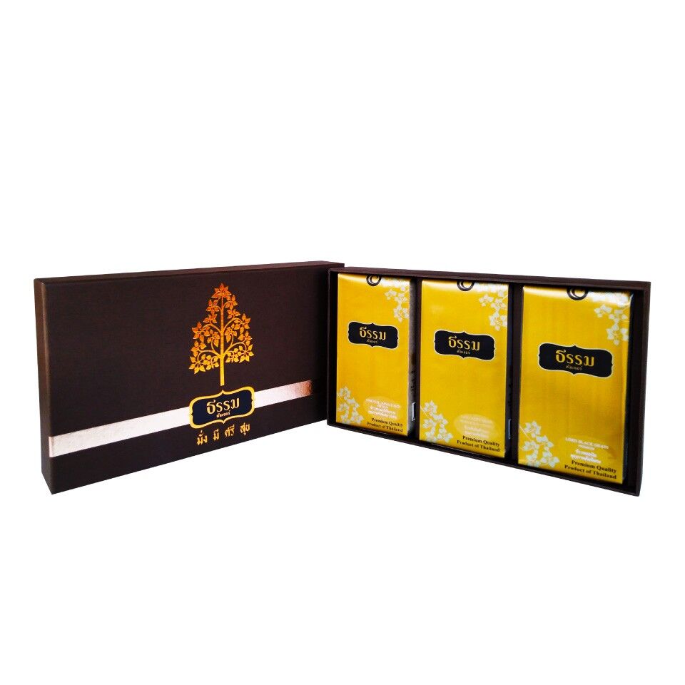 ชุดของขวัญ ธรรม คัลเจอร์ THAMM Signature Gift set มั่ง มี ศรี สุข (สีน้ำตาลเข้ม) รวม 1,500 กรัม 4 ชุด
